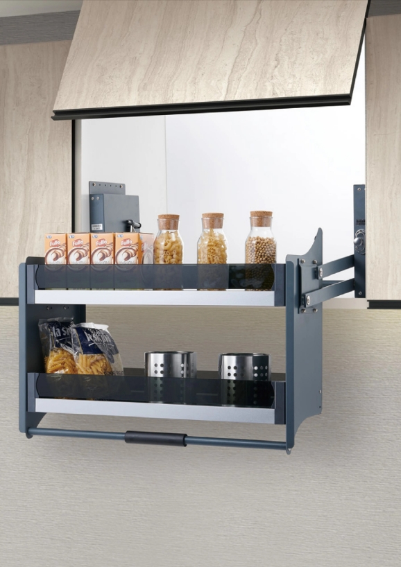 Lift-up basket allows the use of cabinet space accessible with a user-friendly design.